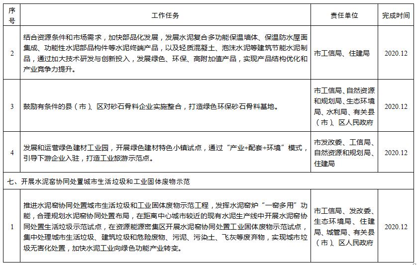 二、工作目標全市圍繞促進產(chǎn)業(yè)轉(zhuǎn)型升級,加快產(chǎn)業(yè)結(jié)構(gòu)調(diào)整,持續(xù)推進水泥行業(yè)健康發(fā)展,到2020年,全市水泥行業(yè)實現(xiàn)水泥產(chǎn)能、水泥熟料企業(yè)、水泥粉磨裝備逐步減少,水泥行業(yè)污染物排放總量大幅減少,企業(yè)熟料生產(chǎn)工序?qū)崿F(xiàn)超低排放;淘汰2000噸/日及以下通用水泥熟料生產(chǎn)線,直徑3米及以下水泥粉磨裝備;企業(yè)智能化水平明顯提升,資源綜合利用水平明顯提升,全員勞動生產(chǎn)率提高30%。
