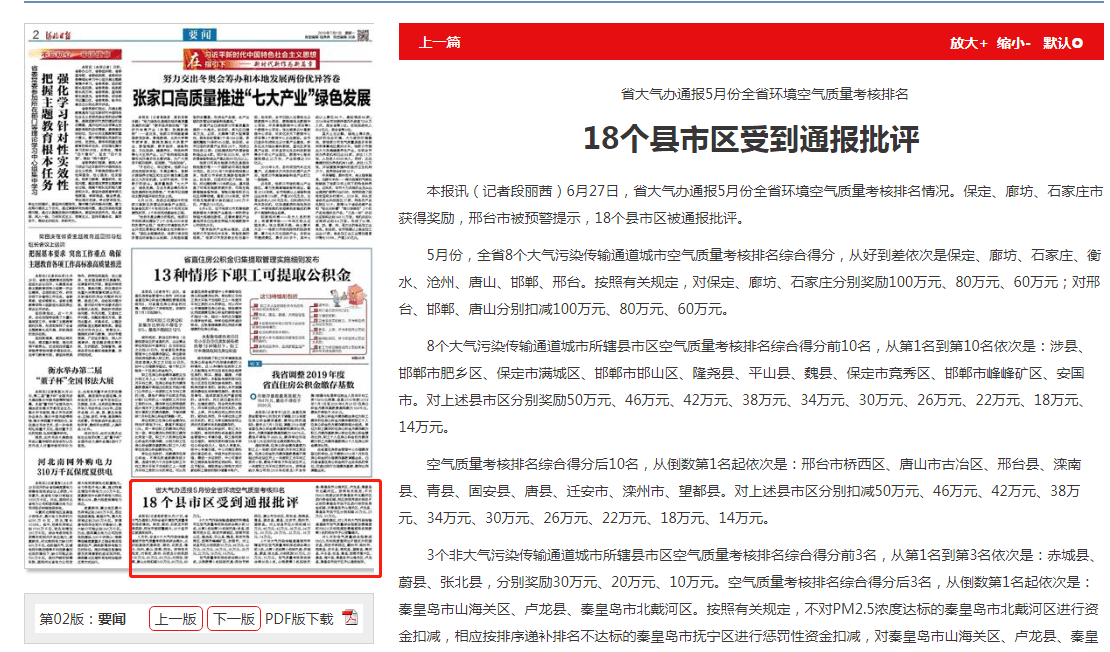對(duì)5月份空氣質(zhì)量綜合指數(shù)或PM2.5月均濃度值同比不降反升的固安縣、邢臺(tái)市橋西區(qū)、霸州市、涿州市、灤南縣、安平縣、南和縣、望都縣、清河縣、平鄉(xiāng)縣、任縣、青縣、邯鄲市復(fù)興區(qū)、唐縣、海興縣、秦皇島市山海關(guān)區(qū)、盧龍縣、秦皇島市撫寧區(qū)予以通報(bào)批評(píng)。
