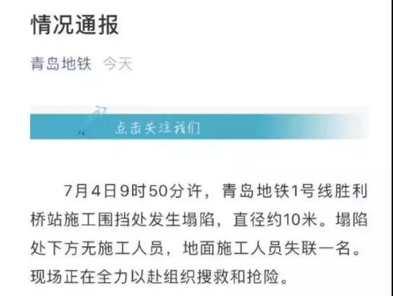 因地鐵施工段坍塌等3起較大事故,青島市政府被約談