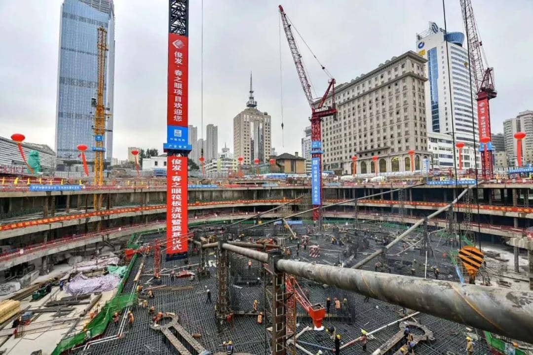 “施工難度全國罕見,對技術(shù)要求極高,多項指標(biāo)創(chuàng)西部第一。” 俊發(fā)集團春之眼項目工程總監(jiān)王云欽說,筏板是主樓的基礎(chǔ),承載整個建筑的負(fù)荷,保證建筑的穩(wěn)定性與安全性,非常重要,普通高樓的筏板厚度通常不超過2米,地標(biāo)建筑的筏板超過4米。