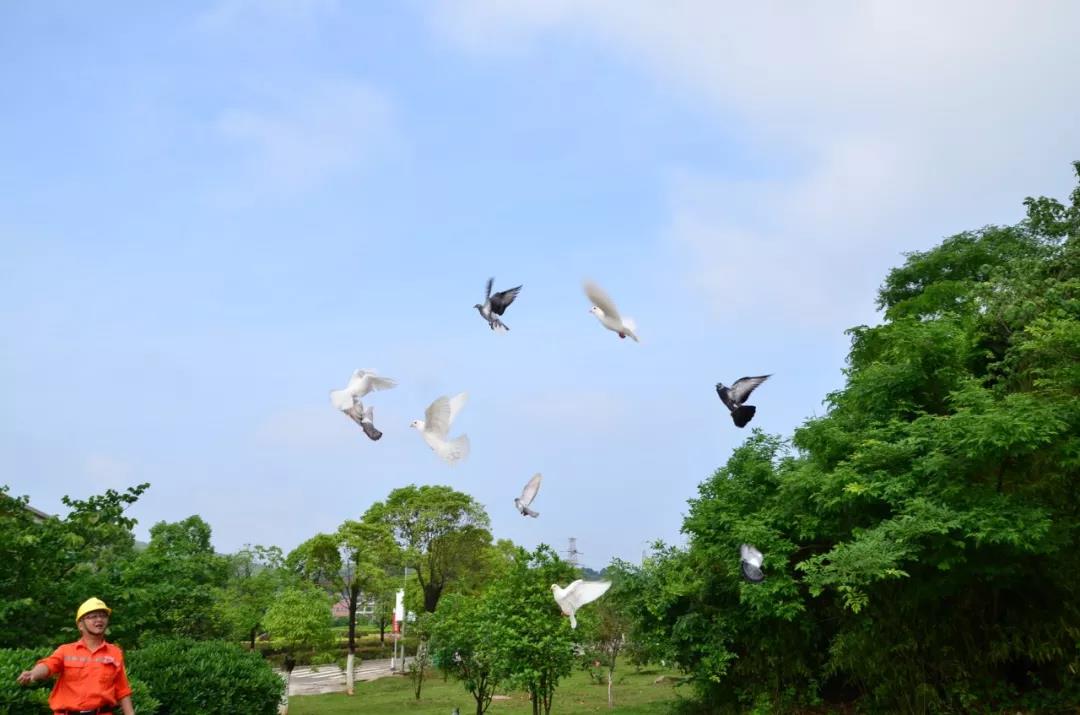 廠區(qū)里鴿群飛舞