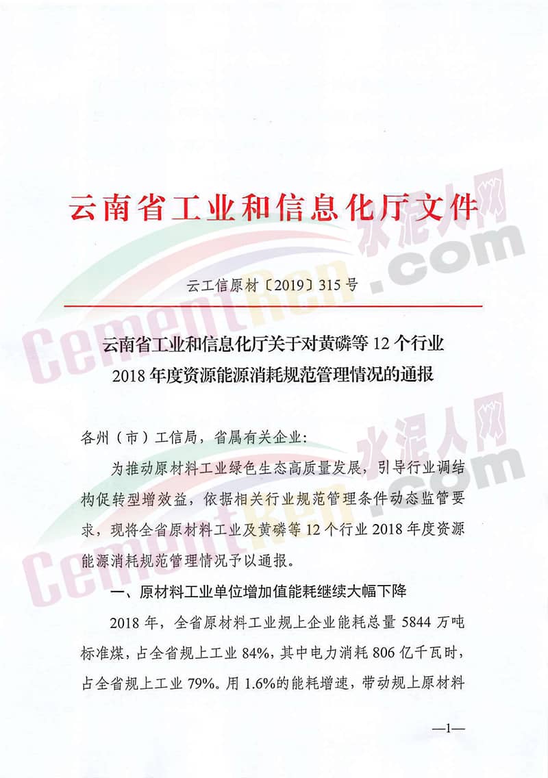 文件中還對6戶企業(yè)予以黃牌警告:云南磷源化工有限公司、師宗縣富盛磷電有限公司、云南宏東鎳業(yè)有限公司、永仁凱杰工貿(mào)有限公司、馬關(guān)縣潤源電冶有限公司未報情況。