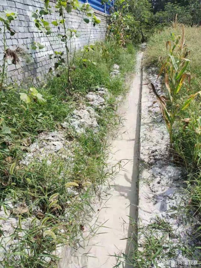 廠區(qū)后側(cè)直排溝因當?shù)卮迕穸啻瓮对V停止排放,水泥漿將地面板結(jié)。