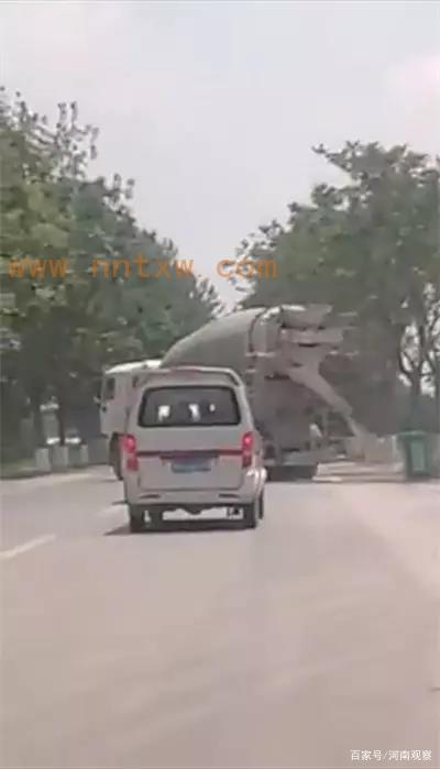 從廠區(qū)內(nèi)出來的大型罐車一路拋灑水泥漿水。