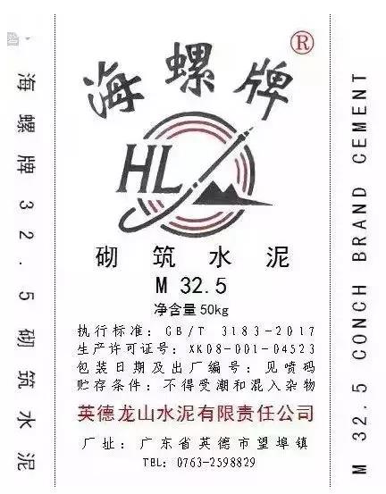 英德龍山海螺牌M32.5水泥