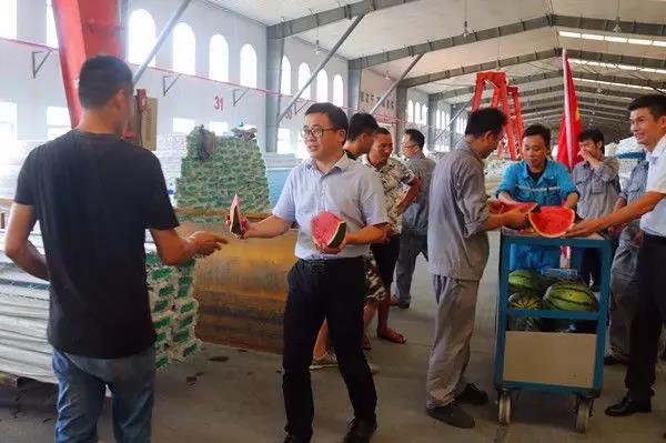 公司也為高溫下堅守崗位的一線員工送去藿香正氣丸、冰鎮(zhèn)飲料、西瓜等解暑防暑用品。