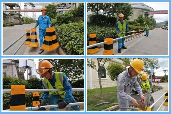 為進(jìn)一步完善公司現(xiàn)場安全基礎(chǔ)設(shè)施,公司安環(huán)處正牽頭組織人員安裝機(jī)動車道和人行道隔離墩,他們的衣服雖然早已被汗水浸濕,但仍一絲不茍地各自完成手中的工作,沒有任何懈怠情緒。