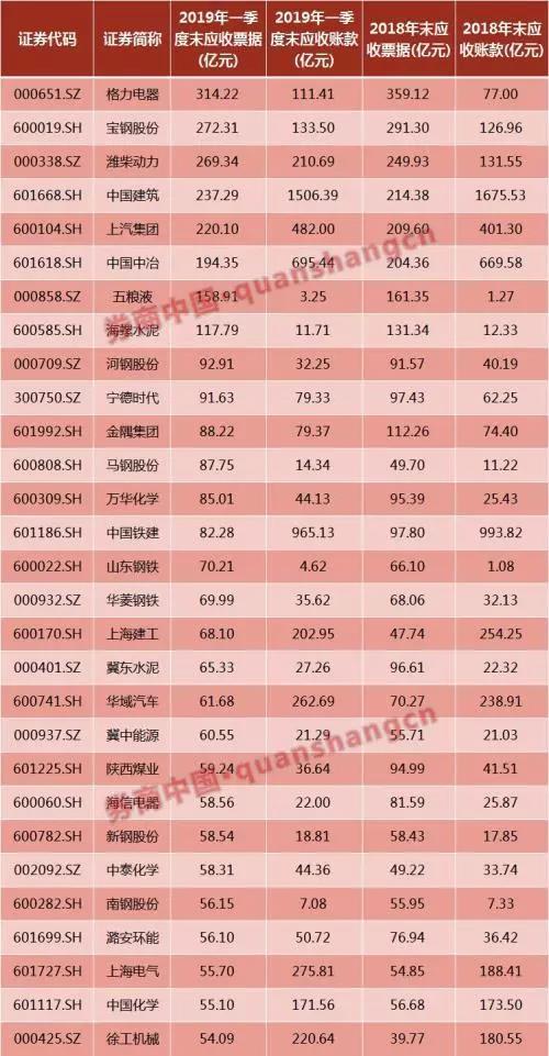 藍籌公司應收票據普遍較高據wind數據顯示,在所有A股公司當中,藍籌公司的應收票據規(guī)模普遍較高。其中,格力電器、寶鋼、濰柴動力、中國建筑、上汽集團、中國中冶、五糧液、海螺水泥一季報的應收票據規(guī)模都突破了100億。