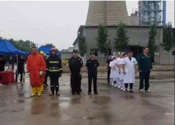 演練以淶水金隅冀東熟料制備車間氨水泄漏導(dǎo)致3人被困為背景,事故發(fā)生后立即啟動(dòng)縣級(jí)應(yīng)急預(yù)案,各相關(guān)部門趕赴事故現(xiàn)場(chǎng),全力營(yíng)救被困人員。