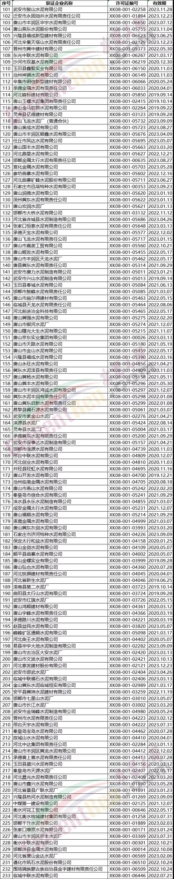 附天津、河北、山西、山東、河南、青海、內(nèi)蒙、東北三省等部分城市水泥企業(yè)名單。