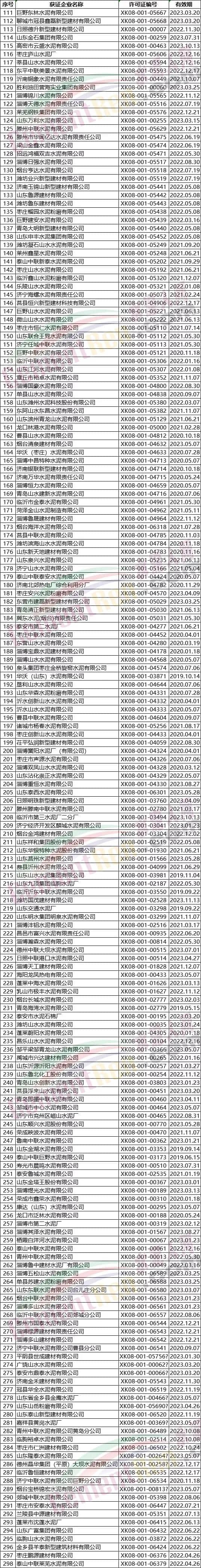 山東省部分水泥企業(yè)名單
