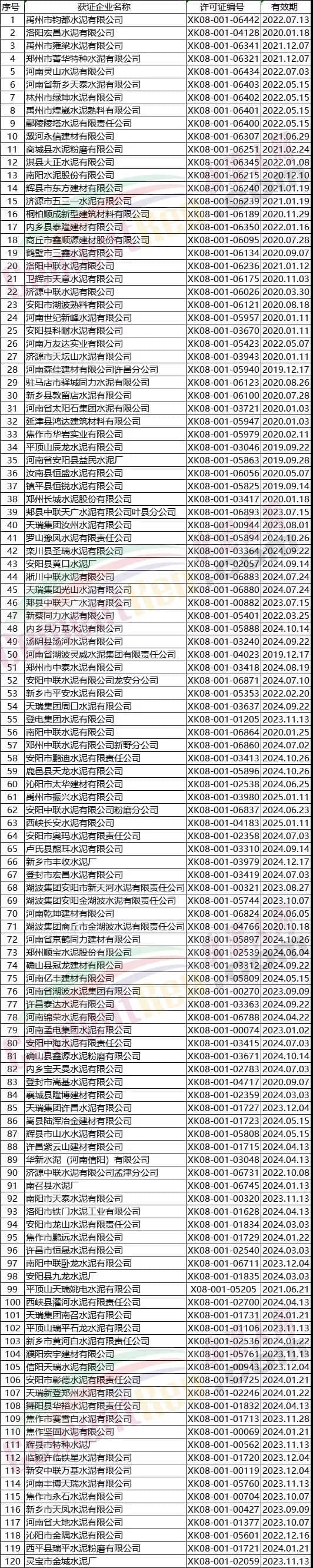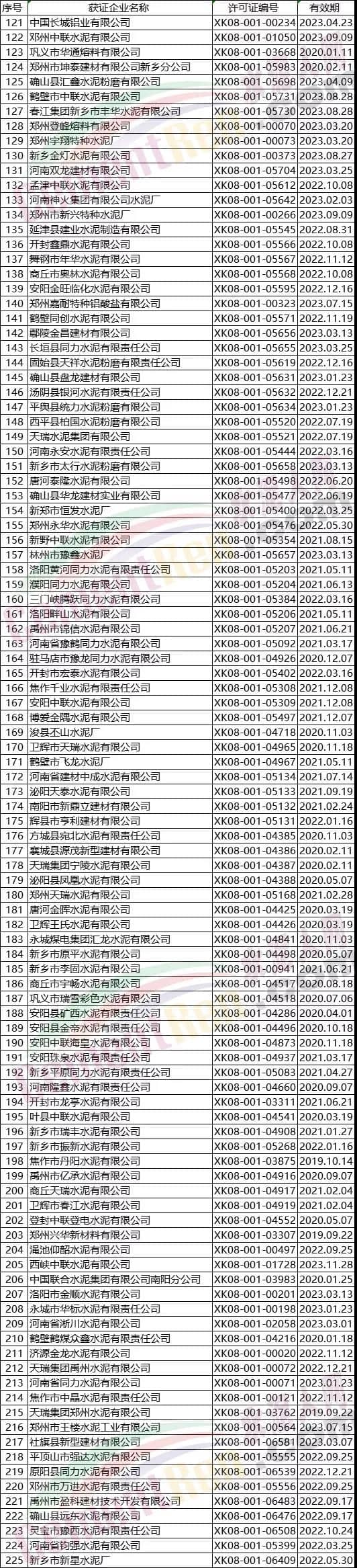 河南省部分水泥企業(yè)名單