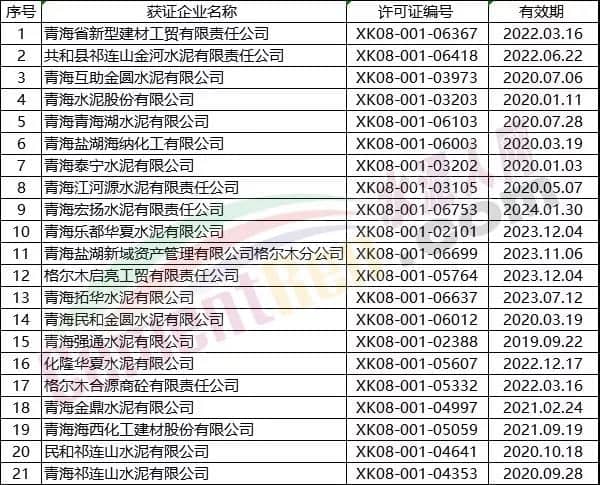 青海省部分水泥企業(yè)名單