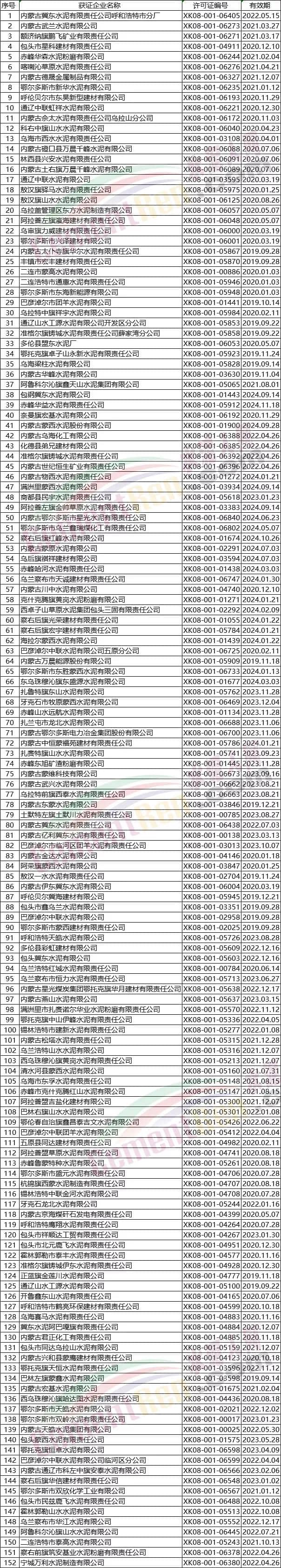 內(nèi)蒙部分水泥企業(yè)名單