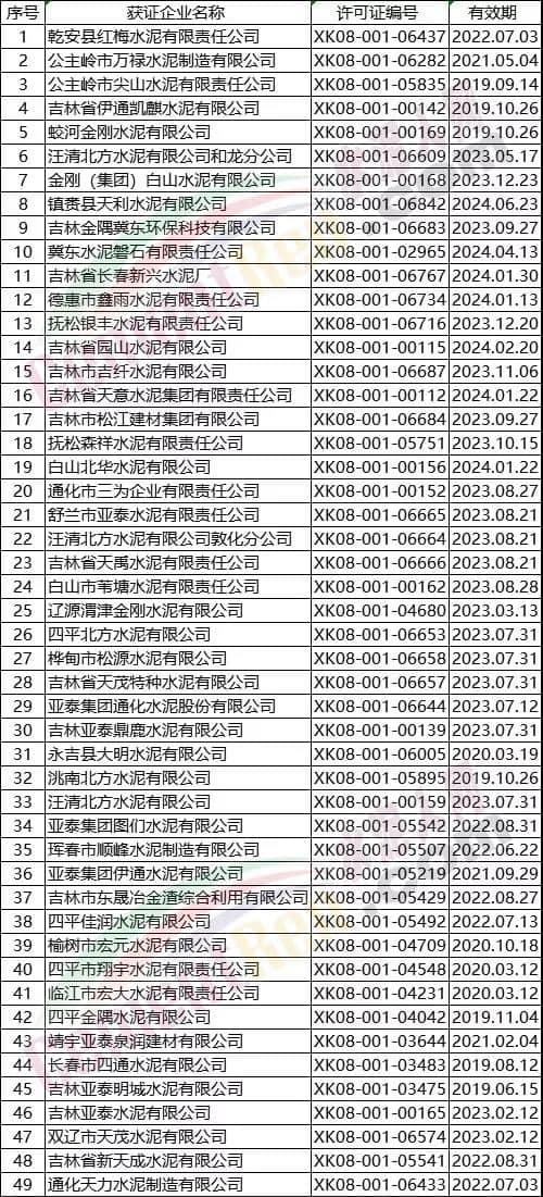 吉林部分水泥企業(yè)名單