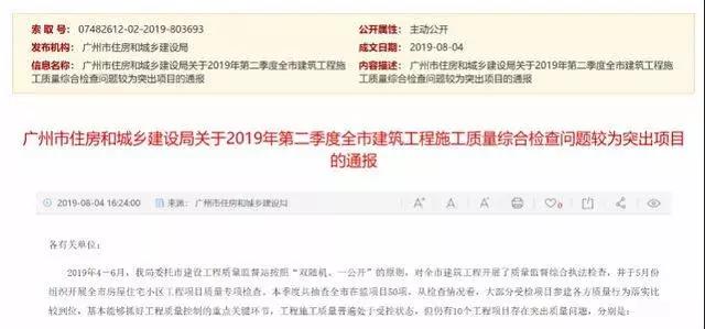 近日,廣州市住房和城鄉(xiāng)建設(shè)局發(fā)布通報(bào)指出,大部分受檢項(xiàng)目參建各方質(zhì)量行為落實(shí)比較到位,基本能夠抓好工程質(zhì)量控制的重點(diǎn)關(guān)鍵環(huán)節(jié),工程施工質(zhì)量普遍處于受控狀態(tài),但仍有10個(gè)工程項(xiàng)目存在突出質(zhì)量問(wèn)題。
