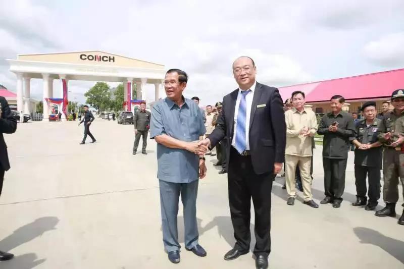 2018年5月31日,柬埔寨王國首相洪森出席馬德望海螺投產剪彩儀式,現場與丁鋒親切握手。