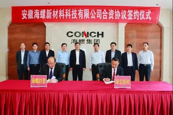 2018年5月11日,海螺新材料科技有限公司投資協(xié)議簽署,丁鋒(左一)代表公司在協(xié)議上簽字。