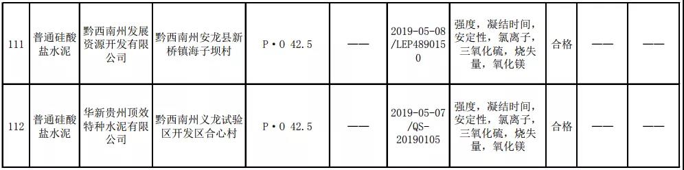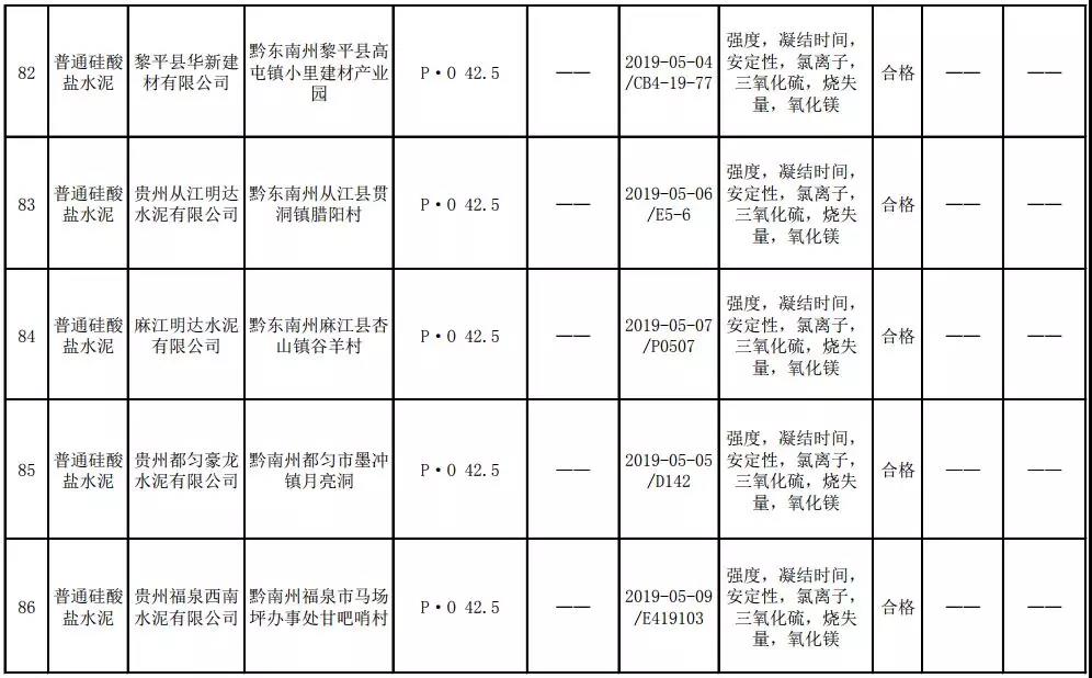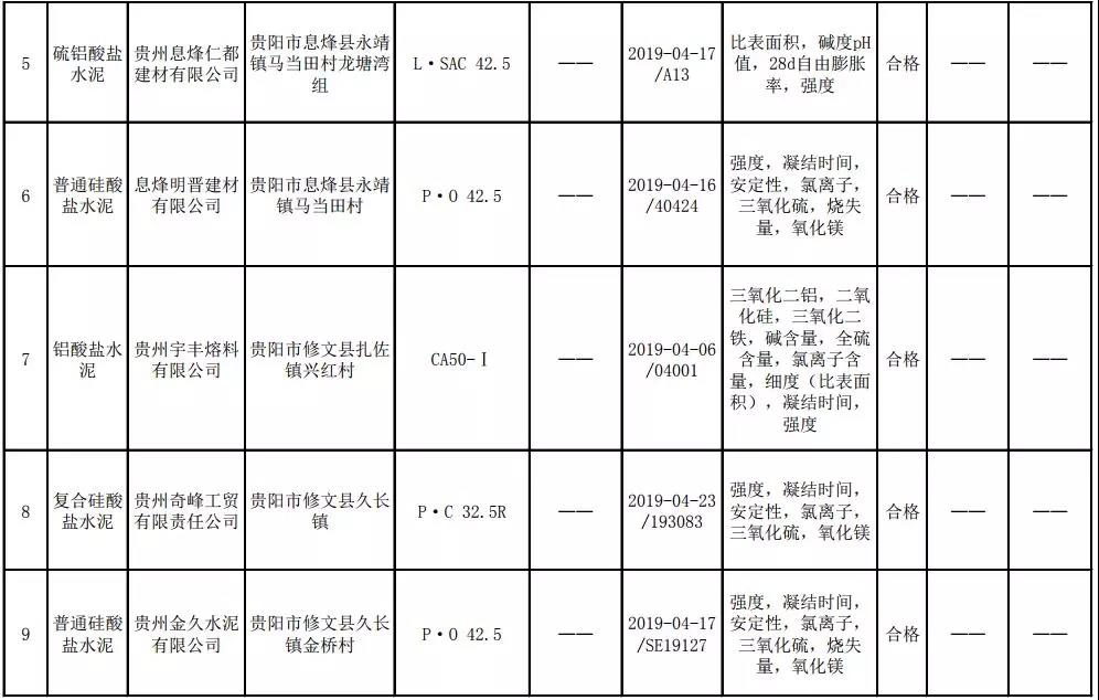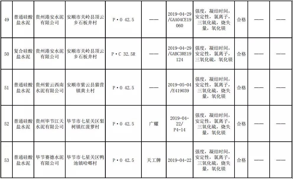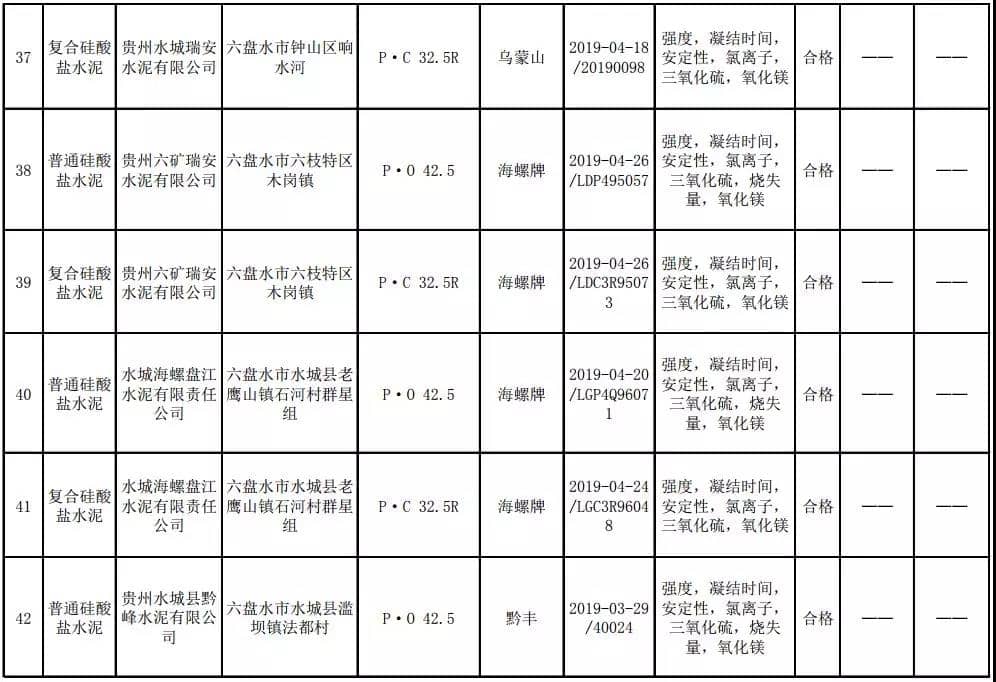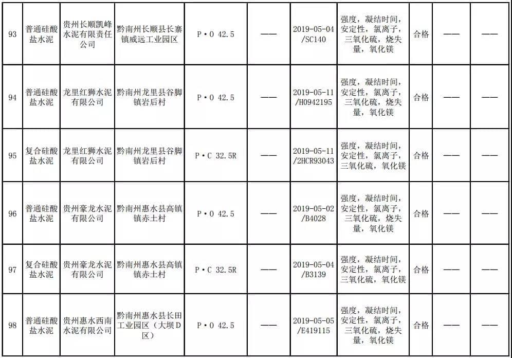 2019年8月13日,貴州省市場(chǎng)監(jiān)督管理局網(wǎng)站公布2019年水泥產(chǎn)品質(zhì)量監(jiān)督抽查結(jié)果。本次監(jiān)督抽查共抽查90家企業(yè)生產(chǎn)的112批次產(chǎn)品,抽查區(qū)域涉及貴陽(yáng)市、遵義市、六盤(pán)水市、安順市、畢節(jié)市、銅仁市、黔東南州、黔南州、黔西南州,產(chǎn)品檢驗(yàn)結(jié)果均為合格,問(wèn)題產(chǎn)品檢出率為0%,問(wèn)題企業(yè)發(fā)現(xiàn)率為0%。