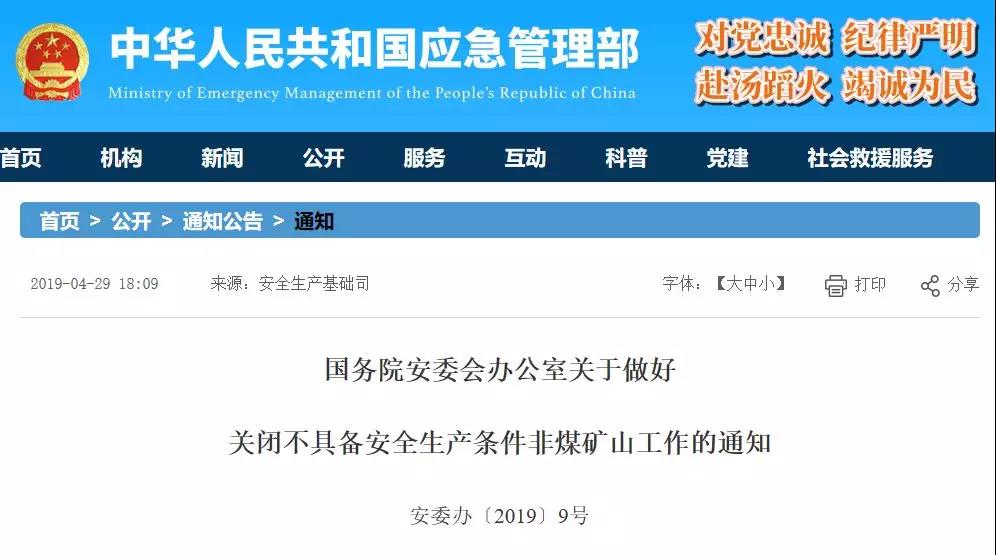 早在今年4月份,國務(wù)院安委會辦公室發(fā)布《關(guān)于做好關(guān)閉不具備安全生產(chǎn)條件非煤礦山工作的通知》