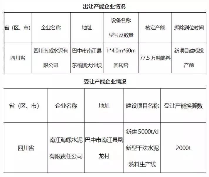 日前,四川省巴中市經(jīng)信委發(fā)布《四川南威水泥有限公司產(chǎn)能出讓公告》稱,四川南威水泥有限公司產(chǎn)能將出讓77.5萬(wàn)噸熟料產(chǎn)能給南江海螺新建5000噸/日熟料生產(chǎn)線。