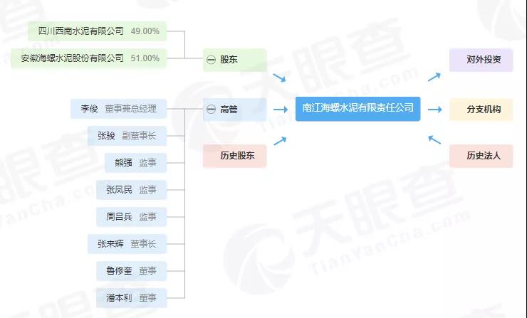 企業(yè)股東信息顯示,南江海螺水泥有限責(zé)任公司為海螺水泥與西南水泥的合資公司,兩者分別持股51%和49%。