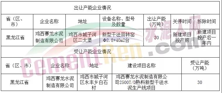 據(jù)黑龍江省工業(yè)和信息化廳發(fā)布《雞西賽龍水泥制造有限公司熟料產(chǎn)能出讓公告》稱,根據(jù)《國務(wù)院關(guān)于化解產(chǎn)能嚴(yán)重過剩矛盾的指導(dǎo)意見》(國發(fā)〔2013〕41號)和《國務(wù)院辦公廳關(guān)于促進(jìn)建材工業(yè)穩(wěn)增長調(diào)結(jié)構(gòu)增效益的指導(dǎo)意見》(國辦發(fā)〔2016〕34號)精神,按照《工業(yè)和信息化部關(guān)于印發(fā)鋼鐵水泥玻璃行業(yè)產(chǎn)能置換實(shí)施辦法的通知》(工信部原〔2017〕337號)要求,現(xiàn)將雞西賽龍水泥制造有限公司出讓水泥熟料產(chǎn)能情況予以公告,歡迎社會公眾進(jìn)行監(jiān)督?! ?br />