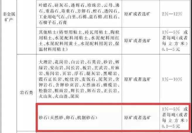 據(jù)此前《中華人民共和國(guó)資源稅法(征求意見稿)》透露內(nèi)容顯示:對(duì)砂石(天然砂、卵石、機(jī)制砂石)征收1%-5%或者1元-10元/立方米資源稅。稅法規(guī)定對(duì)衰竭期礦山開采的礦產(chǎn)品減征30%資源稅,授權(quán)各省對(duì)低品位礦減免資源稅。
