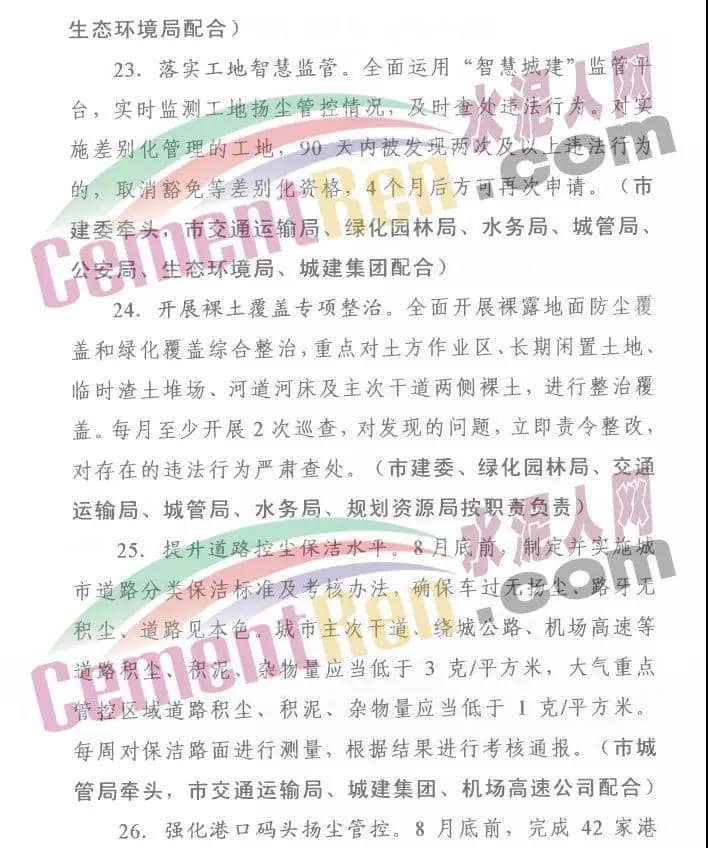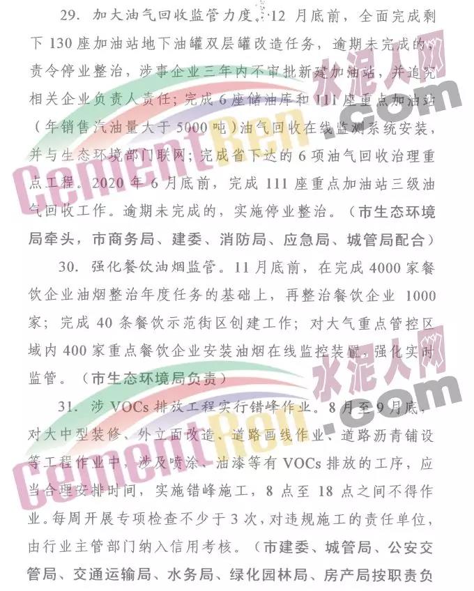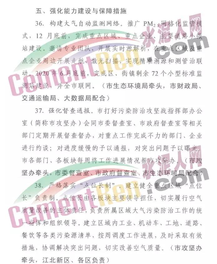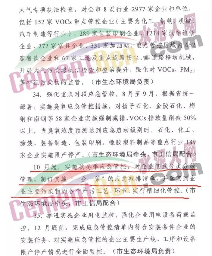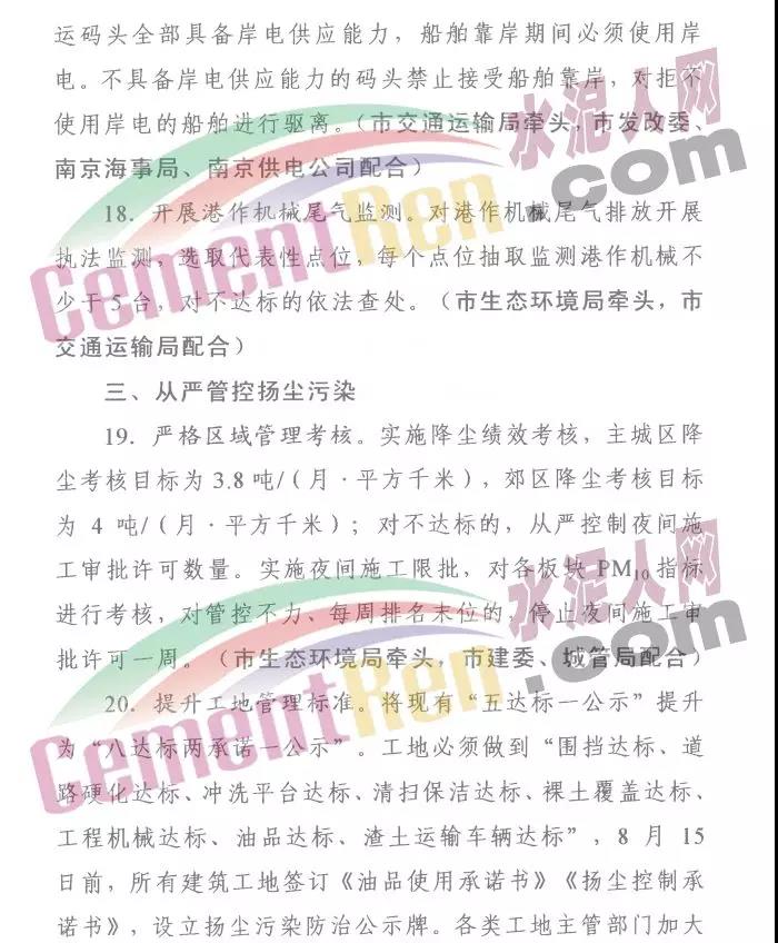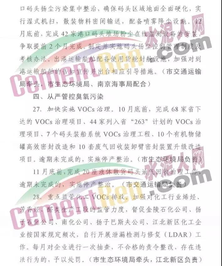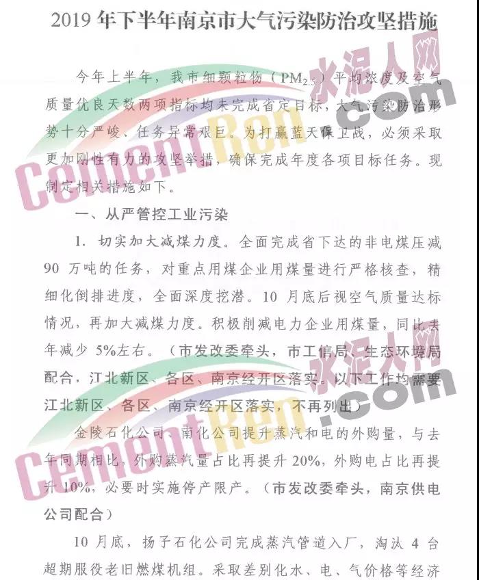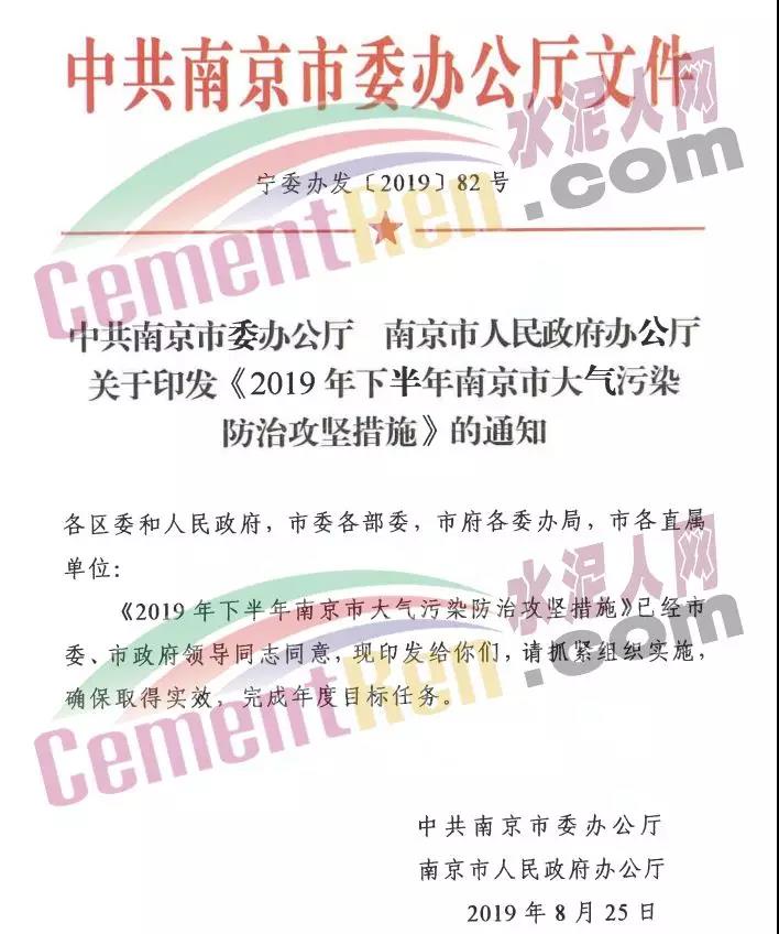 據(jù)水泥人網(wǎng)了解,近日,中共南京市委辦公廳 南京市人民政府公廳印發(fā)《2019年下半年南京市大氣污染防治攻堅(jiān)措施》,針對(duì)各行各業(yè)大污染防治工作提出如下要求: