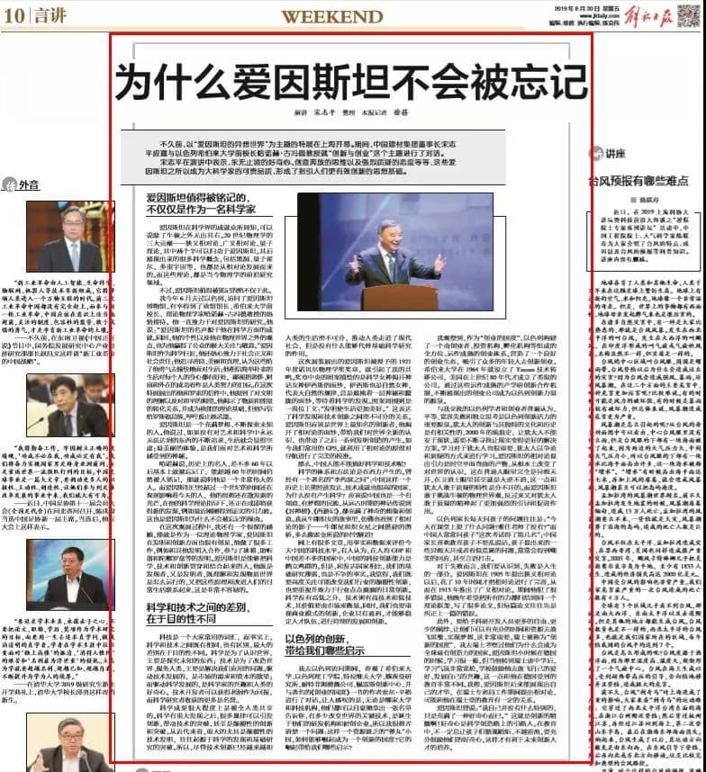 哈諾赫說,歷史上的名人,差不多60年以后基本上就被忘記了,能超越60年的時間仍然被人銘記,那就說明他是一個非常偉大的人。而愛因斯坦已經(jīng)超過一個世紀的時間還在深刻影響著今天的人,他的思想還在散發(fā)新的光芒,在他的科學理論指導下,還正在或即將獲得新的發(fā)現(xiàn),例如最近剛剛得到證實的引力波。這也是愛因斯坦為什么不會被忘記的緣由。