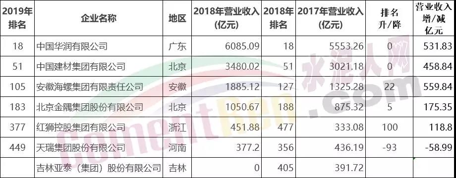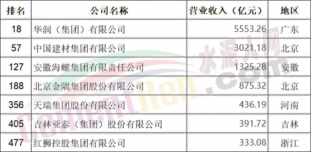 其中水泥行業(yè)華潤(集團)有限公司、中國建材集團有限公司、安徽海螺集團有限責任公司、北京金隅集團股份有限公司、天瑞集團股份有限公司、吉林亞泰(集團)股份有限公司、紅獅控股集團有限公司等多家企業(yè)上榜。