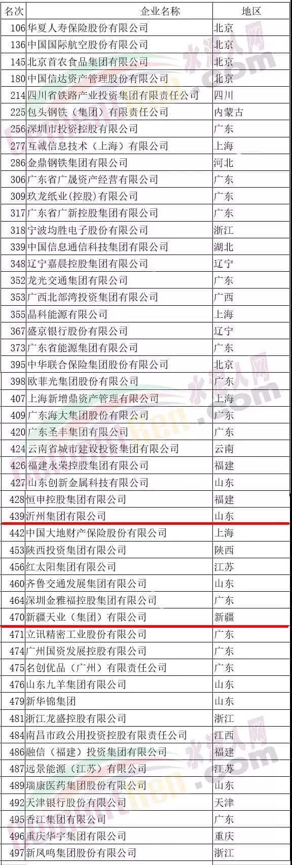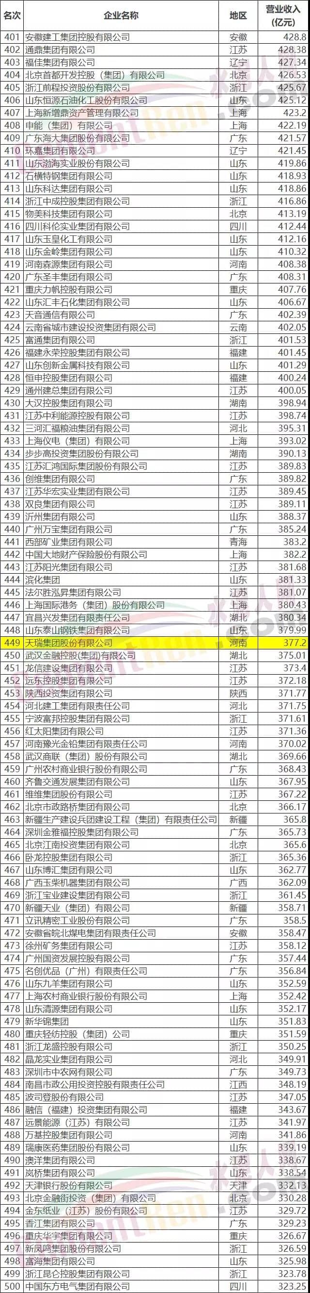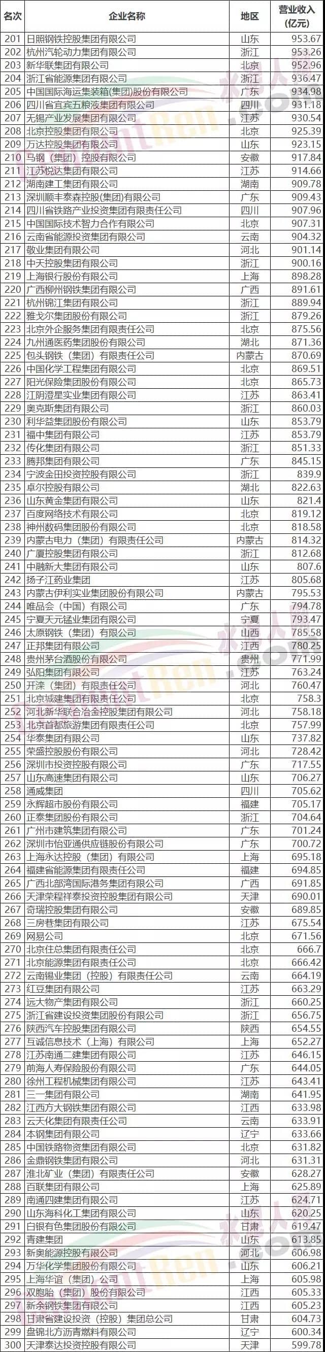 2019中國企業(yè)500強榜單