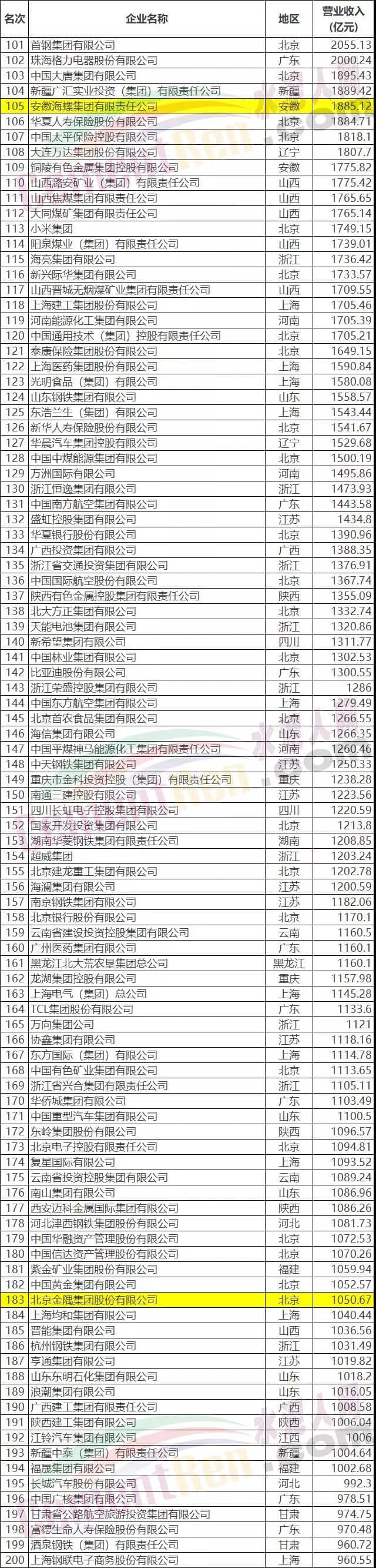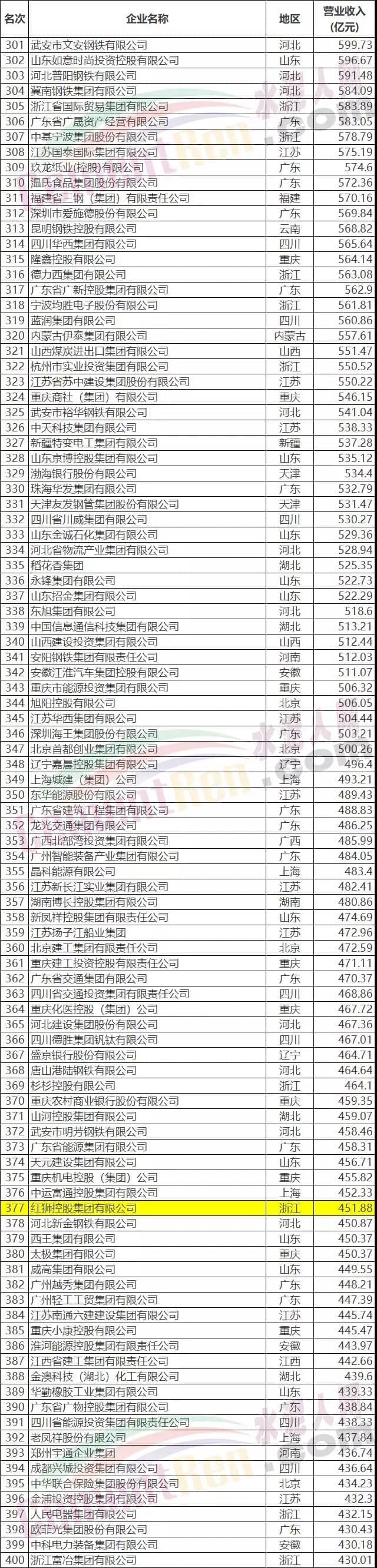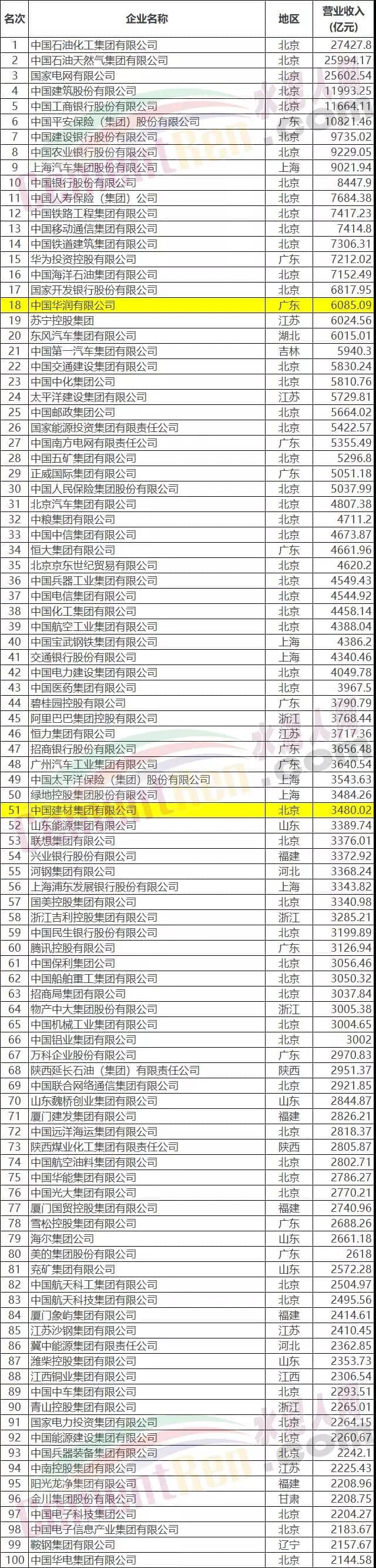 2019中國企業(yè)500強榜單
