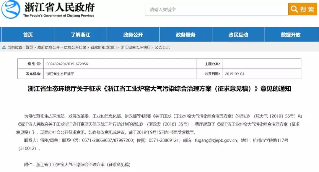 通知稱(chēng):為貫徹落實(shí)生態(tài)環(huán)境部、發(fā)展改革委、工業(yè)和信息化部、財(cái)政部等4部委《關(guān)于印發(fā)〈工業(yè)爐窯大氣污染綜合治理方案〉的通知》(環(huán)大氣〔2019〕56號(hào))和《浙江省人民政府關(guān)于印發(fā)浙江省打贏藍(lán)天保衛(wèi)戰(zhàn)三年行動(dòng)計(jì)劃的通知》(浙政發(fā)〔2018〕35號(hào)),我廳起草了《浙江省工業(yè)爐窯大氣污染綜合治理方案(征求意見(jiàn)稿)》,并面向社會(huì)公開(kāi)征求意見(jiàn)。