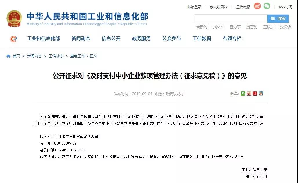 水泥人網(wǎng)從工信部網(wǎng)站獲悉,為了促進國家機關(guān)、事業(yè)單位和大型企業(yè)及時支付中小企業(yè)款項,維護中小企業(yè)合法權(quán)益,根據(jù)《中華人民共和國中小企業(yè)促進法》等法律,工業(yè)和信息化部起草了行政法規(guī)《及時支付中小企業(yè)款項管理辦法(征求意見稿)》,明確規(guī)定國家機關(guān)、事業(yè)單位和大型企業(yè)從中小企業(yè)采購貨物、工程、服務(wù)的,應(yīng)當在30日內(nèi)付款。