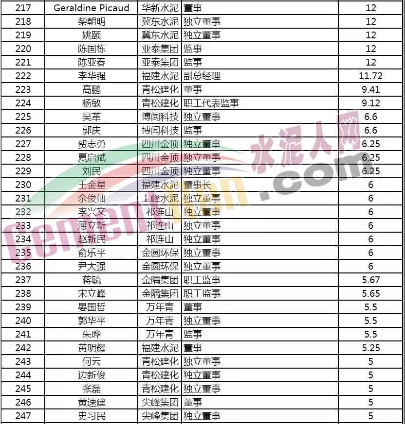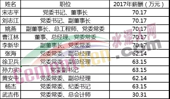 2017年中國建材高管薪酬排行榜