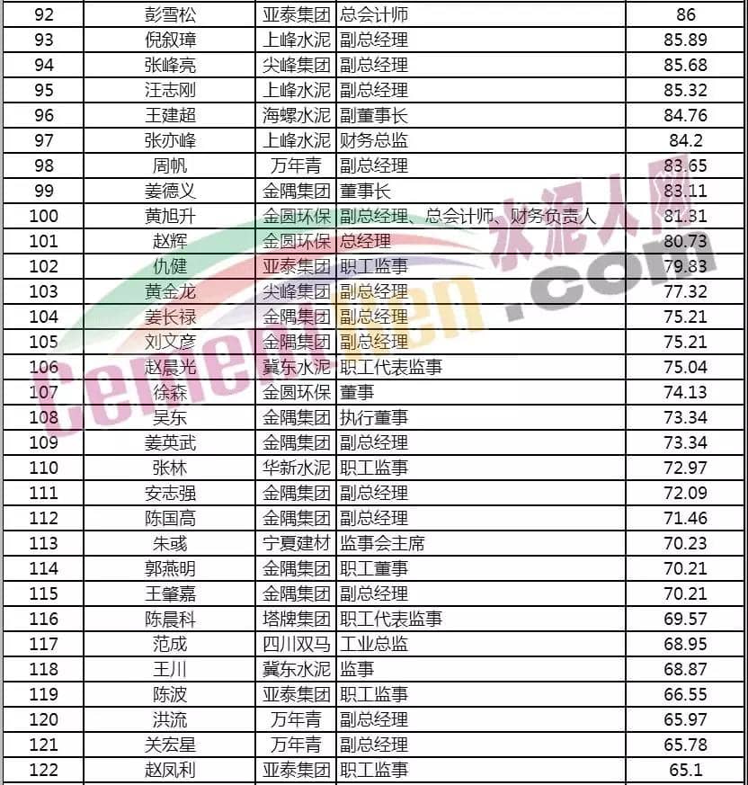 作為水泥行業(yè)的“航母級(jí)”集團(tuán),中國建材高管的薪酬對(duì)于外界來說是一直比較神秘,甚至?xí)聹y(cè)中國建材董事長宋志平的薪酬極高,那么事實(shí)到底是怎樣的呢?據(jù)水泥人網(wǎng)了解,2017年時(shí)中國建材黨委書記、董事長宋志平及董事、總經(jīng)理、黨委常委曹江林等五位高管的年薪都是70.17萬元。