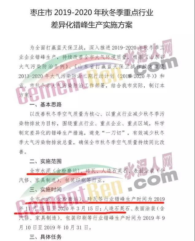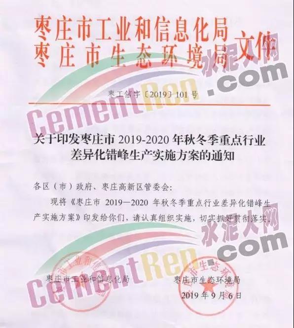 與此同時,水泥大省山東省棗莊市工業(yè)和信息化局、棗莊市生態(tài)環(huán)境局發(fā)布《關(guān)于棗莊市2019~2020年秋冬季重點(diǎn)行業(yè)差異化錯峰生產(chǎn)實(shí)施方案的通知》稱,為全面打贏藍(lán)天保衛(wèi)戰(zhàn),深入推進(jìn)2019~2020年秋冬季工業(yè)企業(yè)錯峰生產(chǎn),持續(xù)改善全市大氣環(huán)境質(zhì)量,根據(jù)《山東省大氣污染防治條例》、《山東省打贏藍(lán)天保衛(wèi)戰(zhàn)作戰(zhàn)方案暨2013~2020年大氣污染防治三期行動計劃(2018~2020年)》和省、市秋冬季大氣污染防治工作部署,結(jié)合我市實(shí)際,制定本方案。