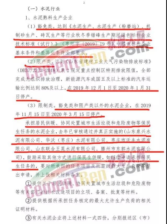 (3) 限制類?;砻忸惡拖蕻a(chǎn)類以外的水泥企業(yè),在2019年11月15日至2020年3月15日停產(chǎn)。