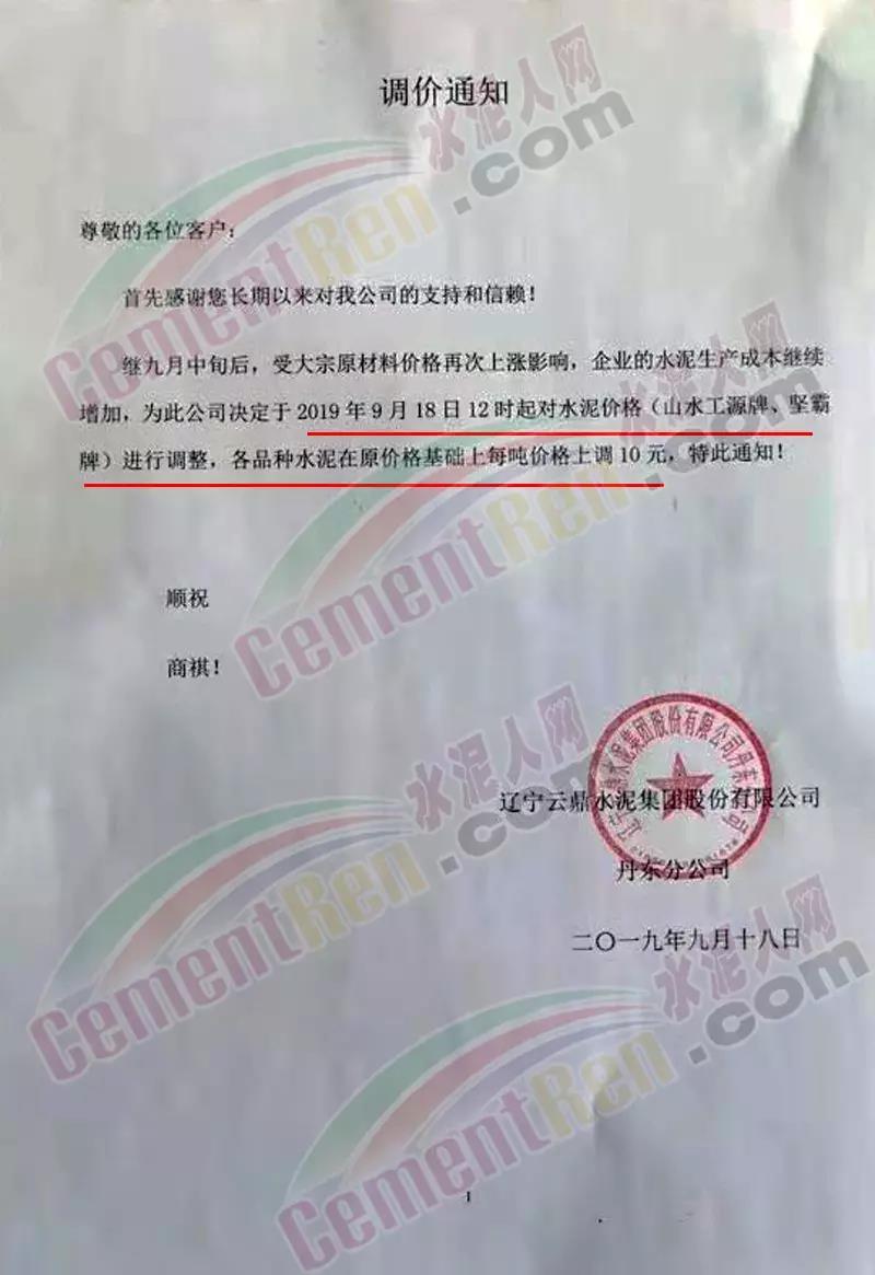 據(jù)了解,上述水泥價(jià)格上漲多因上游原材料礦粉,混合材,以及煤炭價(jià)格上調(diào)導(dǎo)致的成本增加繼而傳導(dǎo)漲價(jià)。亦有部分是政策面因素,停限產(chǎn)導(dǎo)致部分區(qū)域庫位較低,供應(yīng)不足。為保供重點(diǎn)項(xiàng)目,部分企業(yè)上調(diào)了水泥價(jià)格。昨日(9月18日)遼寧云鼎水泥集團(tuán) 股份有限公司發(fā)布調(diào)價(jià)通知稱,繼九月中旬后,受大宗原材料價(jià)格再次上漲影響,企業(yè)的水泥生產(chǎn)成本繼續(xù)增加,為此公司決定于9月18日12時(shí)起對水泥價(jià)格(山水工源牌、堅(jiān)霸牌)進(jìn)行調(diào)整,各品種水泥在原價(jià)格基礎(chǔ)上每噸價(jià)格上調(diào)10元。