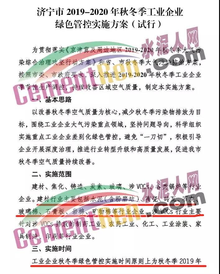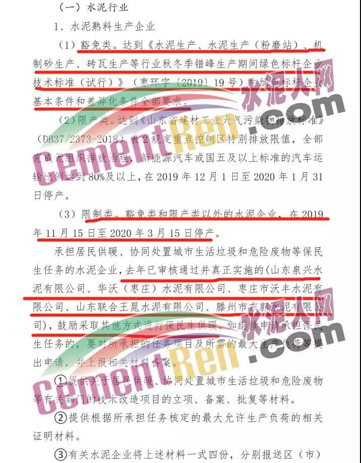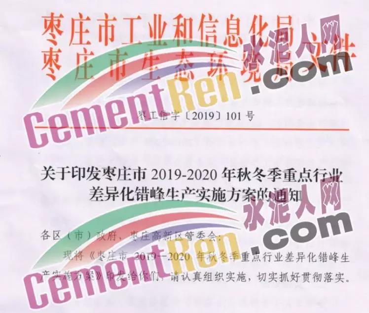 在此之前,棗莊市也發(fā)布了《關(guān)于印發(fā)棗莊市2019-2020年秋冬季重點行業(yè)差異化錯知生產(chǎn)實施方案的通知》,全市水泥(含粉磨站)、磚瓦等行業(yè)錯峰生產(chǎn)時間為 2019年11月15日至2020年3月15日。
