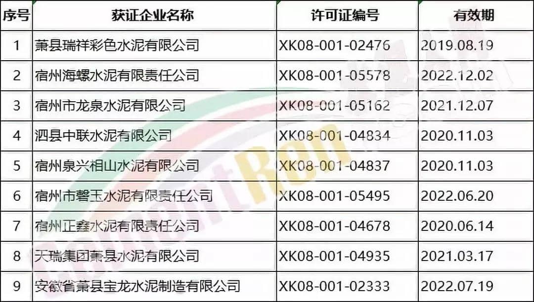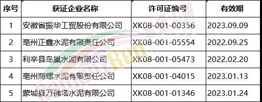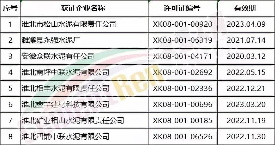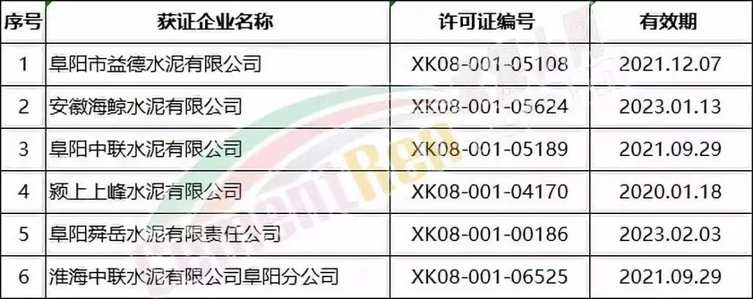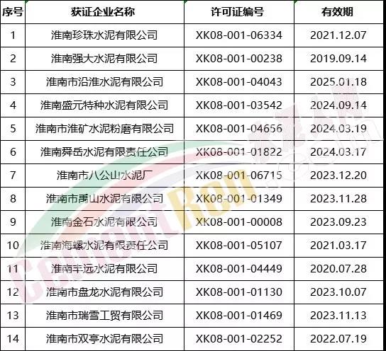 淮北、亳州、宿州、蚌埠、阜陽、淮南六市涉及水泥企業(yè)名單如下: