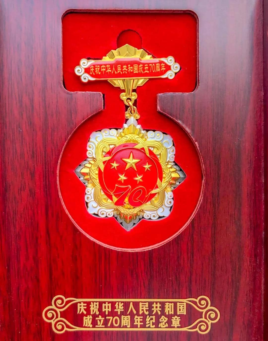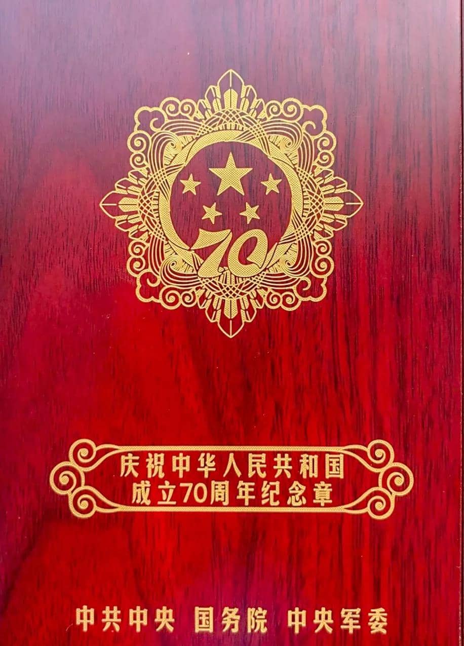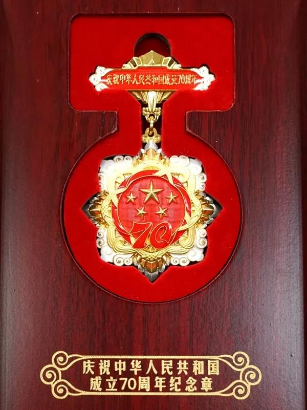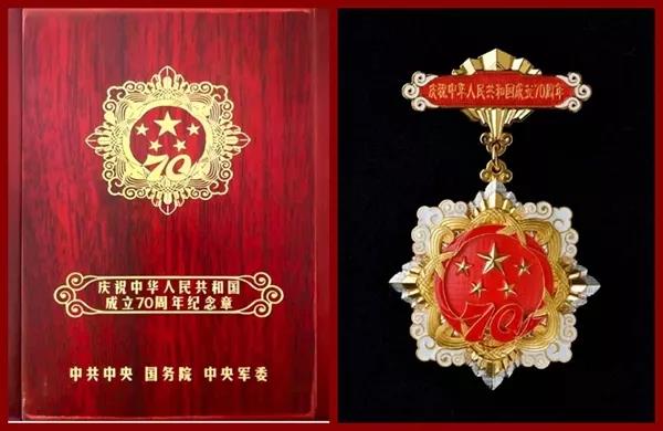 由中共中央、國務院、中央軍委頒發(fā)的“慶祝中華人民共和國成立70周年”紀念章,是新中國成立70周年系列慶?;顒拥闹匾M成部分,旨在表彰中華人民共和國成立前參加革命工作和健在的老戰(zhàn)士老同志、中華人民共和國成立后獲得國家級表彰獎勵及以上榮譽的人員、中華人民共和國成立后因參戰(zhàn)榮立一等功以上獎勵的軍隊人員,以及為中華人民共和國成立作出杰出貢獻的國際友人。