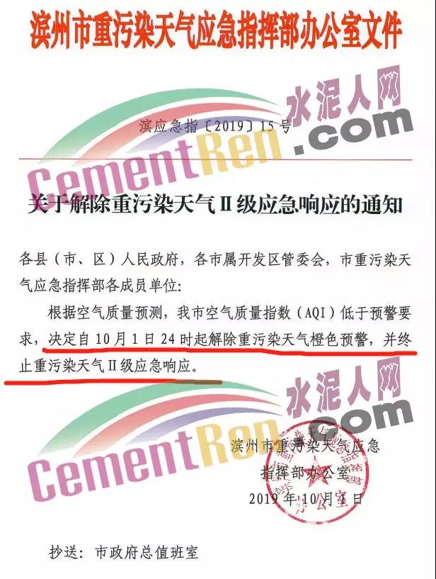同日,濱州市重污染天氣應(yīng)急指揮部辦公室發(fā)布《關(guān)于解除重污染天氣II級(jí)應(yīng)急響應(yīng)的通知》稱(chēng),根據(jù)空氣質(zhì)量預(yù)測(cè),濱州市空氣質(zhì)量指數(shù)低于預(yù)警要求,決定自10月1日24日時(shí)起解除重污染天氣橙色預(yù)警,并終止重污染天氣II級(jí)應(yīng)急響應(yīng)。