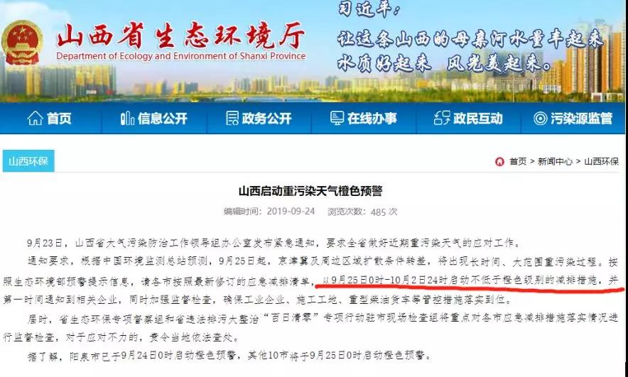 10月2日24日起,山西啟解除重污染天氣橙色預(yù)警,屆時(shí),工地、企業(yè)、施工工地也即將恢復(fù)生產(chǎn)和施工。