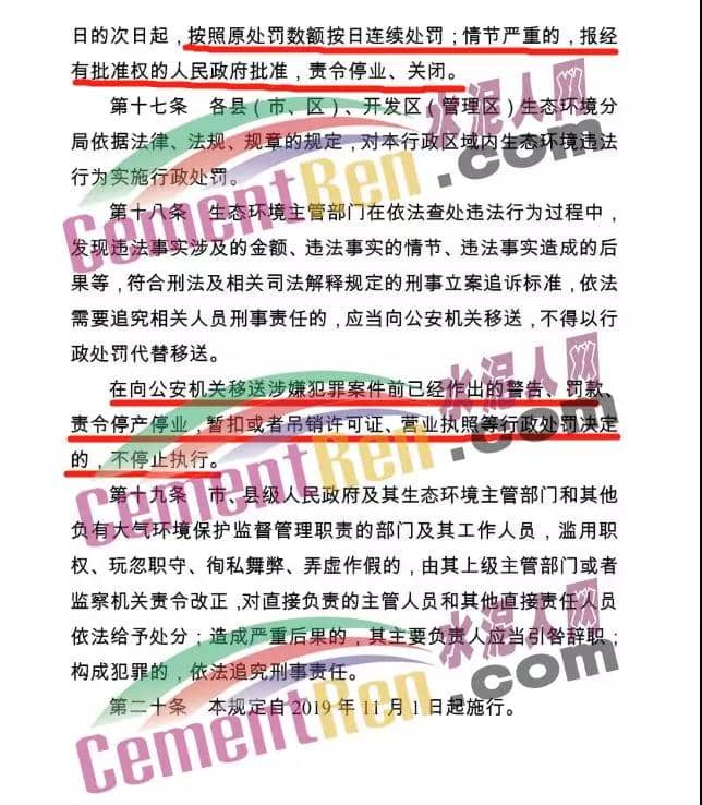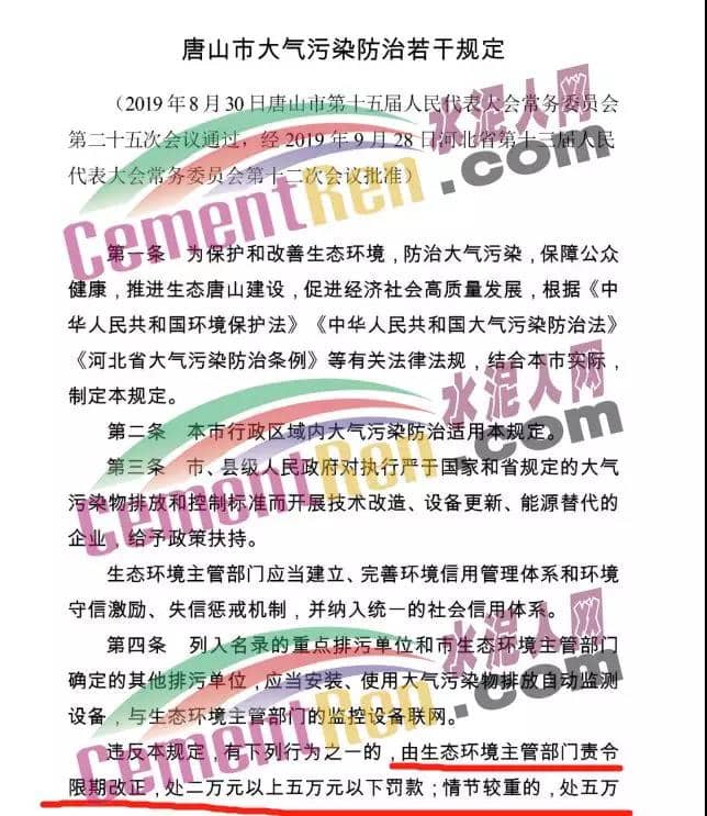 據(jù)水泥人網(wǎng)消息,近日,唐山市第十五屆人民代表大會(huì)常務(wù)委員會(huì)發(fā)布《公告》稱,《唐山市大氣污染防治若干規(guī)定》已于2019年8月30日唐山市第十五屆人民代表大會(huì)常務(wù)委員會(huì)第二十五次會(huì)議通過(guò),經(jīng)河北省第十三屆人民代表大會(huì)常務(wù)委員會(huì)第十二次會(huì)議于2019年9月28日批準(zhǔn),自2019年11月1日起施行?! ≡撘?guī)定稱:列入名錄的重點(diǎn)排污單位和市生態(tài)環(huán)境主管部門確定的其它排污單位,應(yīng)當(dāng)安裝、使用大氣污染排放自動(dòng)監(jiān)測(cè)設(shè)備、與生態(tài)環(huán)境主管部門的監(jiān)控聯(lián)網(wǎng)?! ∵`反本規(guī)定,有下列行為之一的,由生態(tài)環(huán)境主管部門 責(zé)令限期改正,處二萬(wàn)元以上五萬(wàn)元以下罰款;情節(jié)較重的,處五萬(wàn)元以上十萬(wàn)元以下罰款;情節(jié)嚴(yán)重的,處十萬(wàn)以上二十萬(wàn)以下罰款;拒不改正的,責(zé)令停產(chǎn)整治;構(gòu)成犯罪的,依法追究刑事責(zé)任: 一、未按照規(guī)定安裝、使用大所占污染排放自動(dòng)監(jiān)測(cè)設(shè)備或者未按照規(guī)定與生態(tài)環(huán)境主管部門的監(jiān)控設(shè)備聯(lián)網(wǎng),并保證監(jiān)測(cè)設(shè)備常運(yùn)行的; 二、、自動(dòng)監(jiān)測(cè)設(shè)備因故障不能正常動(dòng)行,排污單位未按照規(guī)定向生態(tài)環(huán)境主管部門報(bào)告的; 三、自動(dòng)監(jiān)測(cè)設(shè)備因故障不能正常運(yùn)行,排污單位未按照規(guī)定報(bào)送人工監(jiān)測(cè)數(shù)據(jù)的; 四、侵占、破壞、損毀或者擅自移動(dòng)、改變、拆除、閑置大氣污染排放自動(dòng)監(jiān)測(cè); 五、篡改、偽造大氣污染自監(jiān)測(cè)數(shù)據(jù)的; 六、未按照規(guī)定對(duì)所排放的工業(yè)廢氣和有毒有害大氣污染物進(jìn)行監(jiān)測(cè)并保存原始監(jiān)測(cè)記錄?! ≡娜缦拢?img alt="" src="http://m.jnyqt.com/uploadfile/2019/1008/20191008043243345.jpg" />