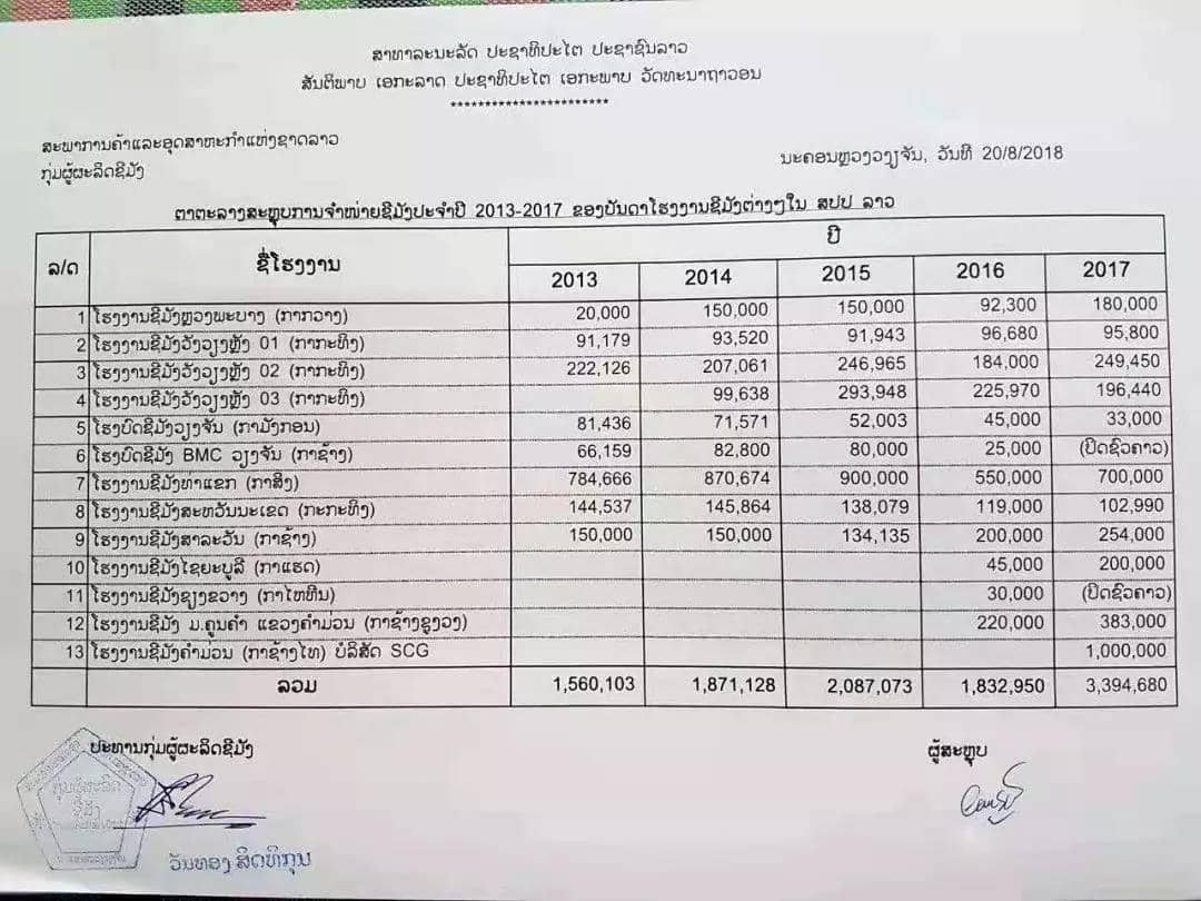 根據(jù)2018年統(tǒng)計(jì)(來自水泥生產(chǎn)商集團(tuán)的信息),老撾在全國(guó)范圍內(nèi)共有13個(gè)水泥廠,自2013年至2015年,共有9個(gè)廠有生產(chǎn)和銷售活動(dòng)。