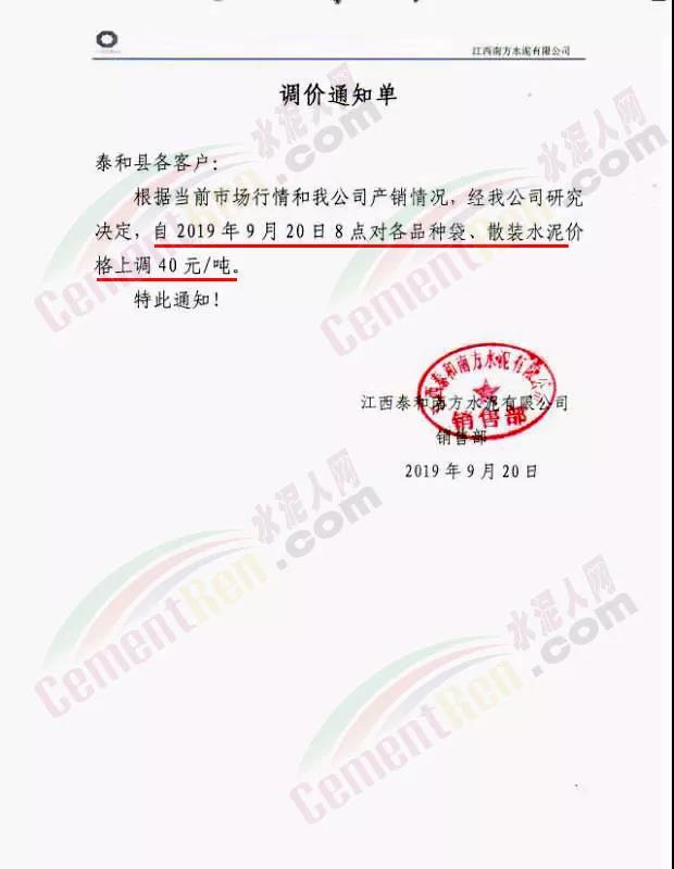 昨日通知上調(diào)價(jià)格的還有湖南華新湘鋼水泥有限公司。