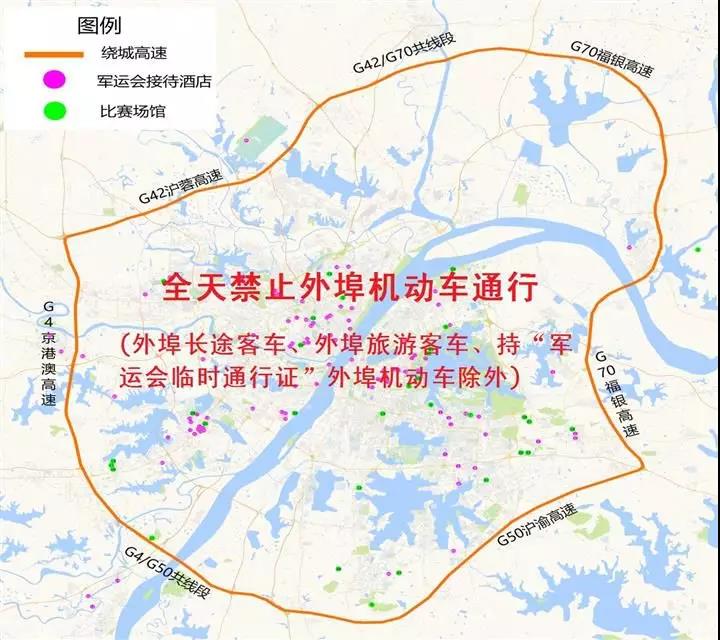 危爆物品運輸車限行、禁行關于外埠機動車,武漢市繞城高速公路以內的區(qū)域(不含繞城高速公路)全天禁止外埠機動車通行,外埠長途客車、外埠旅游客車、持“軍運會臨時通行證”的外埠機動車除外。