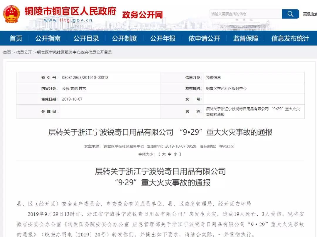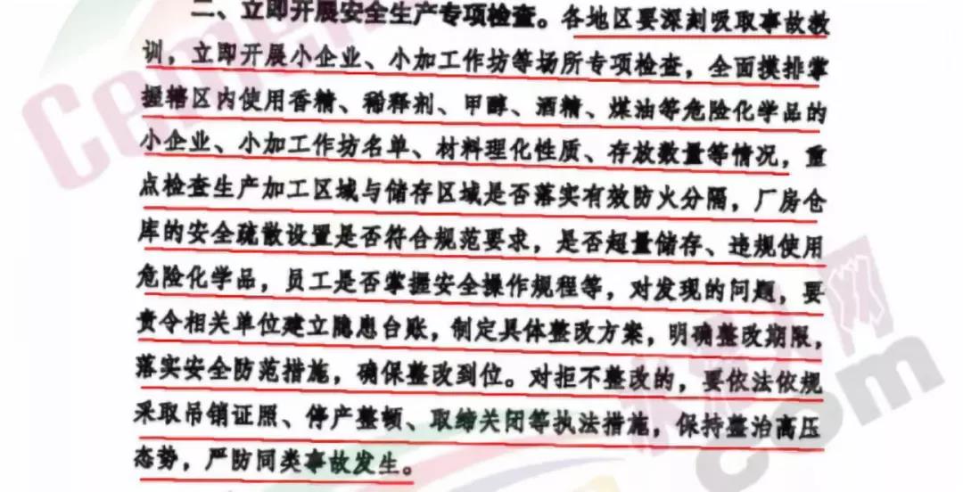 事故發(fā)生后,各級機關(guān)非常重視。10月3日,國務(wù)院安委會辦公室、應(yīng)急管理部下發(fā)了《關(guān)于浙江寧波銳奇日用品有限公司“9•29”重大火災(zāi)事故的通報》的特提文件。文件指出,初步調(diào)查表明,火災(zāi)系車間工作人員在一層香水灌裝區(qū)域生產(chǎn)過程中操作不當引發(fā)塑料制品、包裝紙以及三甘酯、異構(gòu)十二烷、香精等原料燃燒。并要求各地立即開展小企業(yè)、小加工作坊等場所安全生產(chǎn)專項檢查。